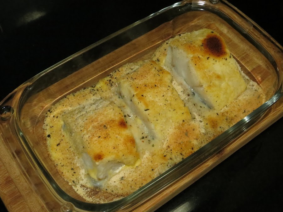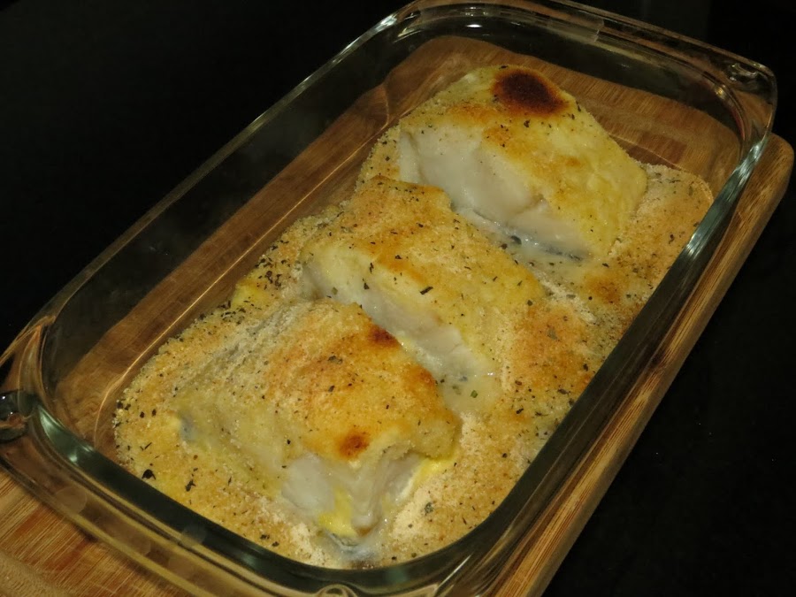 Sacamos y ponemos una capa de mayonesa, mejor si puede ser casera, y una capa de pan rallado que habremos mezclado con el ajo en polvo y el perejil. Metemos al horno y gratinamos hasta que veamos que está dorado, sacamos y a comer.