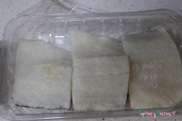 Encima se ponen los lomos. Yo usé tres lomos de bacalao desalado.