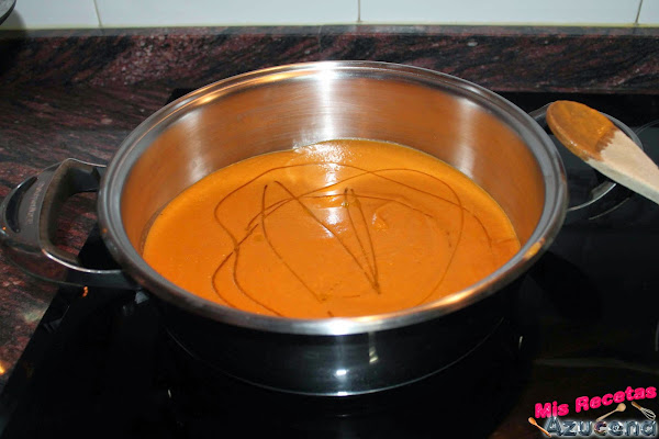 Ahora en la misma olla batiremos todo y lo pasaremos por el colador más fino que tengamos.
