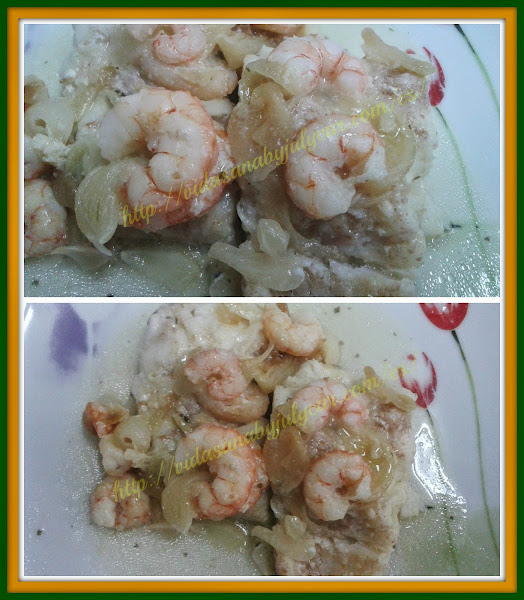 1º Enharinar un poco los lomos de bacalao con la maicena, meter en la cubeta de la GM E y en menú freír sellar por ambos lados y reservar, sin limpiar la cubeta añadir el aceite de oliva y pochar las cebollas y los ajos, una vez pochado, añadir los lomos del bacalao reservado, las gambas y el vino blanco, sal al gusto, cancelar programa, tapar con válvula cerrada, menú guiso abrir y servir
