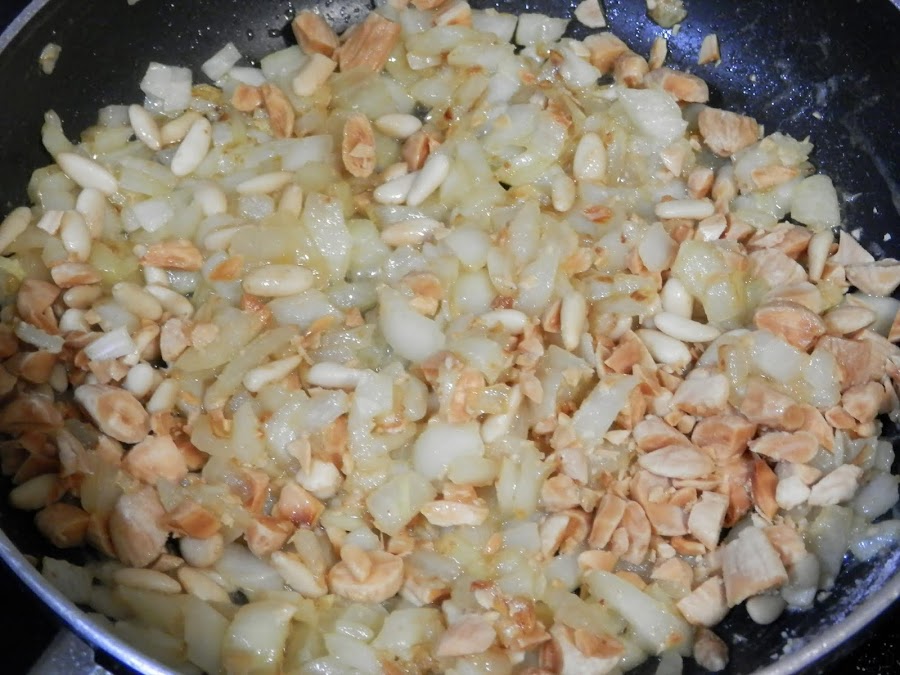 Una vez la tengamos casi hecha, añade las almendras troceadas y los piñones.