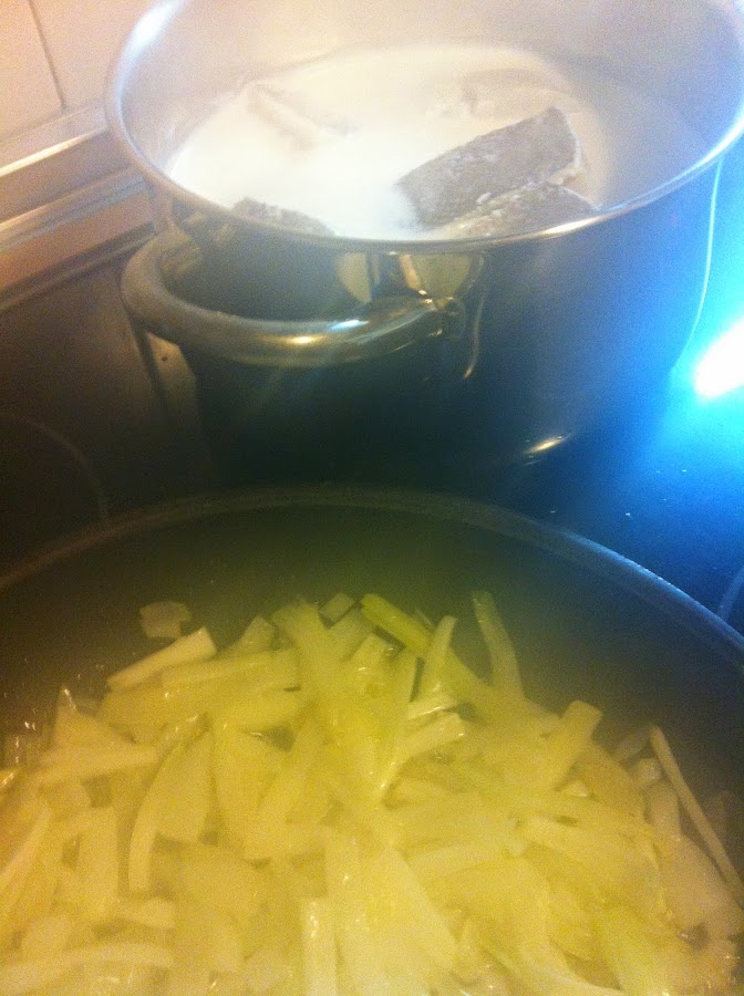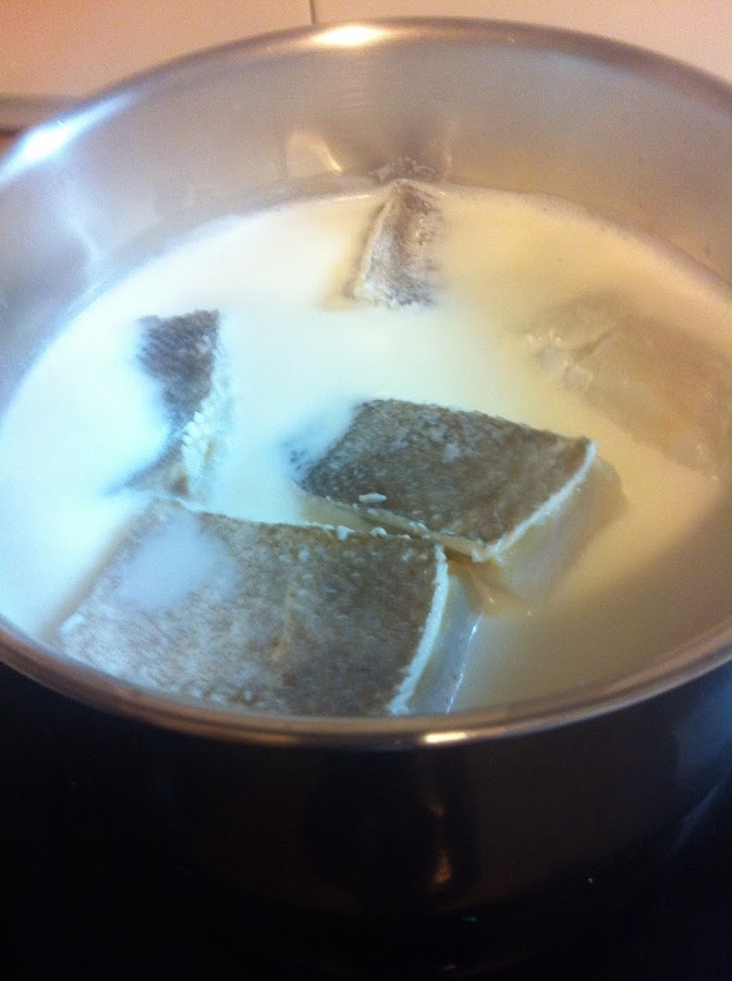 Una vez desalado, se cuece en un cazo con la leche unos 2 minutos.