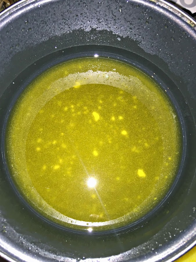 Cuando esté el bacalao en su punto, lo retiramos del aceite, lo reservamos y cuándo se temple el aceite, vamos a montar el pil-pil. Lo montaremos a medias, sin que termine de espesar, pues pasaremos por la batidora el pil-pil con las alcachofas. Reservaremos algunos cuartos para la decoración final del plato.