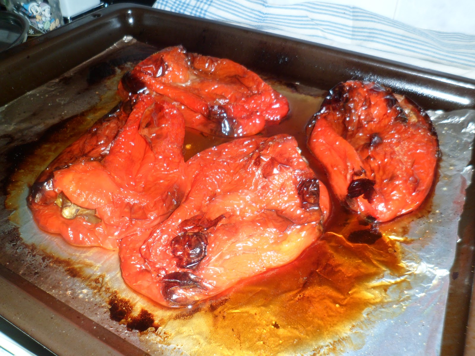 Los dejaremos enfriar y los limpiaremos de la piel y las pepitas, haremos tiritas y las pondremos en un tapper. Echaremos el jugo que ha soltado, un poco de aceite y un par de ajos. Se conserva así varios días en la nevera, también podemos congelarlos.