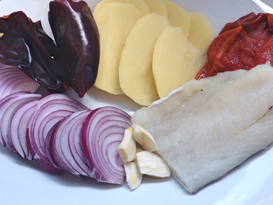 En el momento que el agua tenga el 3º hervor, retiramos la cazuela del fuego y NO TIREIS EL AGUA, dejamos a un lado la cazuela, ya que ése agua nos servirá para la salsa Bizkaina.