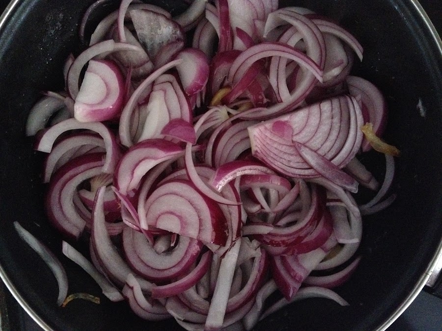 Bajamos la intensidad del calor, no queremos que se nos queme la cebolla ehh y además, así nos da tiempo para ir preparando otras cositas. :-)