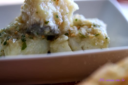 El caso es que el otro día estaba cotilleando por el Puchero de Morguix y encontré una receta de bacalao con salsa de piñones, muy sencilla, que me pareció deliciosa y como se suele decir, a falta de pan buenas son tortas..... Como no tenía piñones pues la hice con almendras y el resultado fue exquisito, como todo lo que he copiado de Marga....INGREDIENTES PARA 4 PERSONAS: