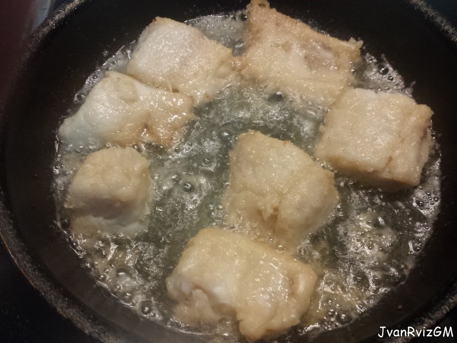 Antes de enharinar el bacalao, dejarlo escurrir.