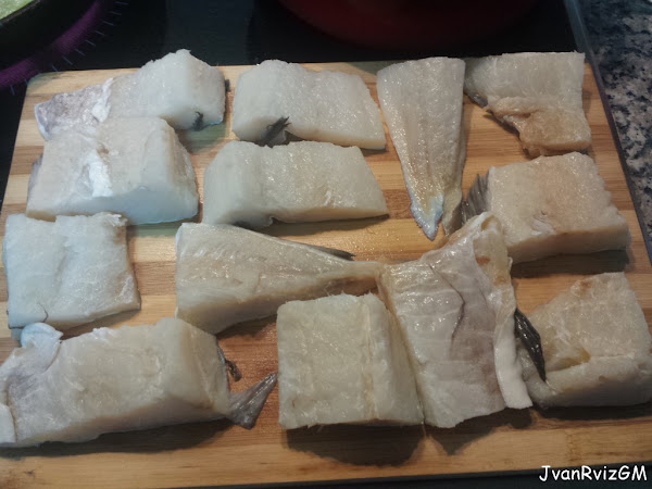 Poner el bacalao a desalar 24 horas, cambiándole el agua 3
