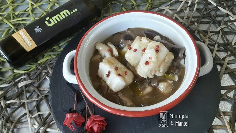 Tapamos la cazuela y dejamos cocer unos minutos. Apagamos y dejamos que se haga el bacalao con el calor residual.