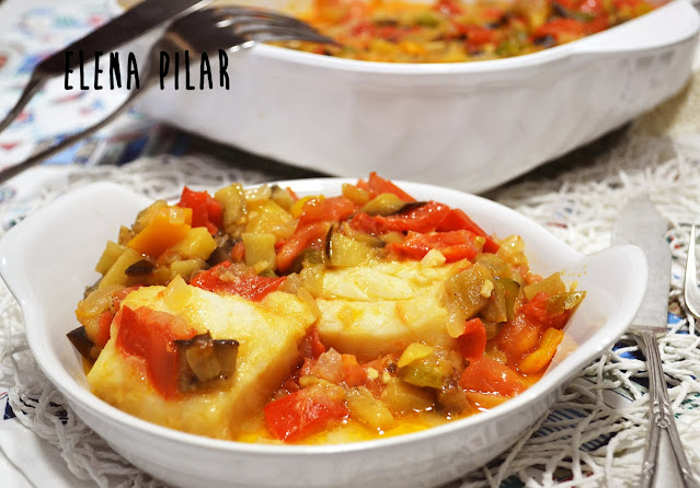 Cocinamos las verduras durante unos 10 minutos y las vertemos sobre el pescado.