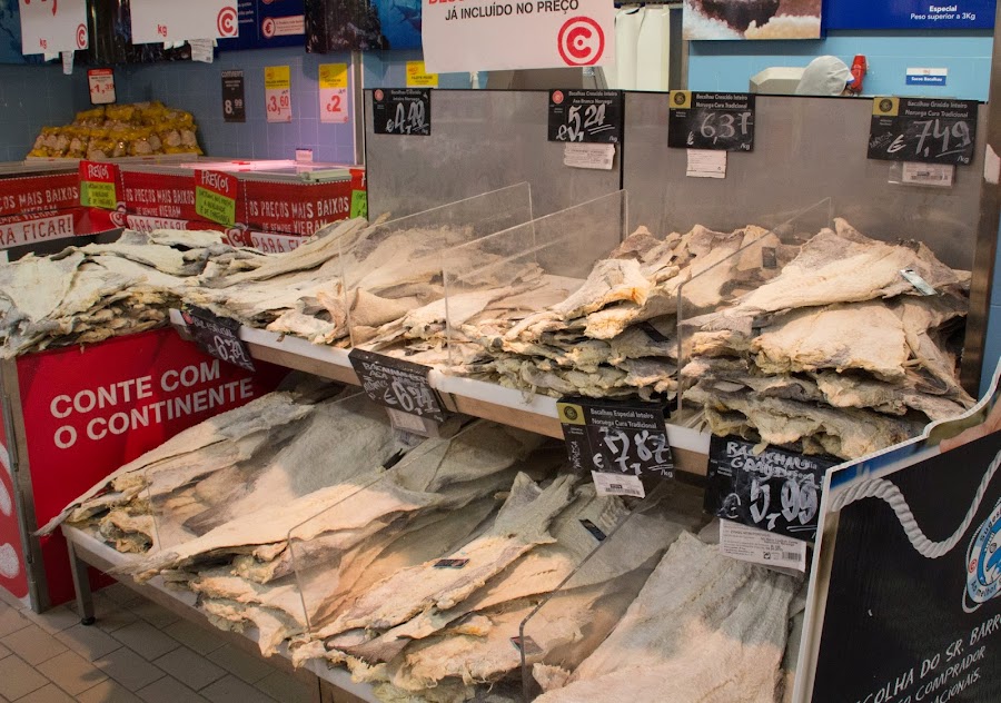 Ya que el pueblo de Isma está cerca de Portugal (país que me encanta y se come de maravilla), aprovechamos nuestra visita turística a la región del Alentejo para comprar bacalao. Por ser unos de los platos típicos allí (sobre todo el bacalhau à Brás=bacalao desmigado) , se puede encontrar fácilmente, de una calidad y precio extraordinarios, comparado con España.