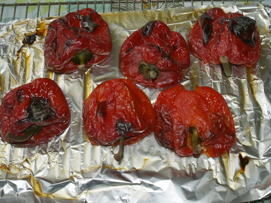 - Por otro lado tenemos que asar los pimientos. También los podéis comprar ya asados, pero a mí me gustan más los que aso en casa y no cuesta nada. También os enseño como lo hago aquí, eso sí, no hay que hacer el paso final de aliñarlos con ajo y aceite, claro. Los pelamos y cortamos en tiras, nada más.