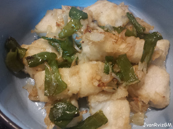 Enharinar el bacalao y sofreírlo hasta dorarlo y