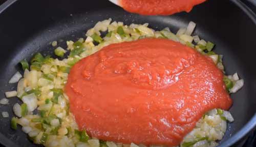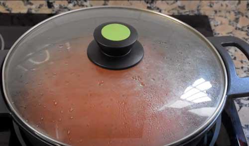 6. Luego, tapamos la sartén para evitar salpicaduras y cocinamos el tomate a fuego suave hasta que haya perdido el agua y veamos que ya está bien hecho.