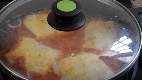 8. Ya solo tenemos que volver a tapar la sartén y dejar a fuego medio unos 4 ó 5 minutos más hasta que el pescado termine de cocinarse.