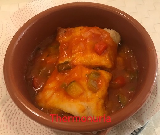 Enharina ligeramente el bacalao y fríelo, acompaña con la xanfaina.