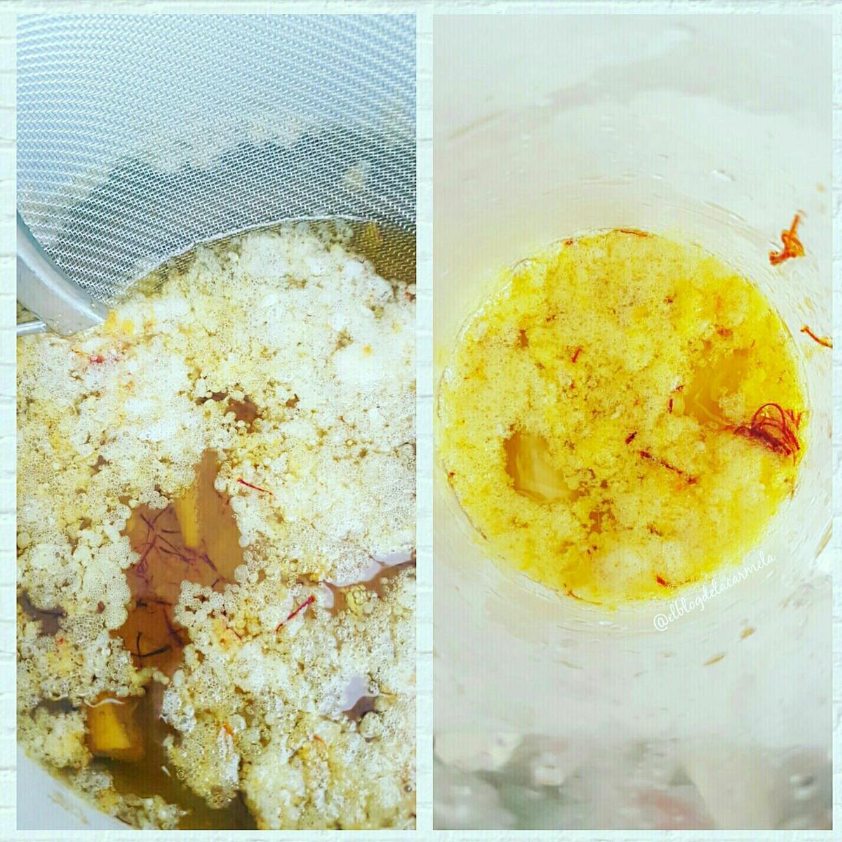 Gelatina. El bacalao suelta una gelatina blanca que reservaremos para hacer nuestra muselina. Yo la he retirado con un colador una vez tenía confitado el bacalao