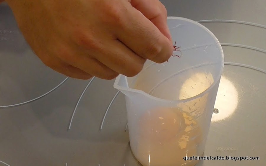 Incorporamos al vaso alrededor de unas 10 hebras de azafrán.