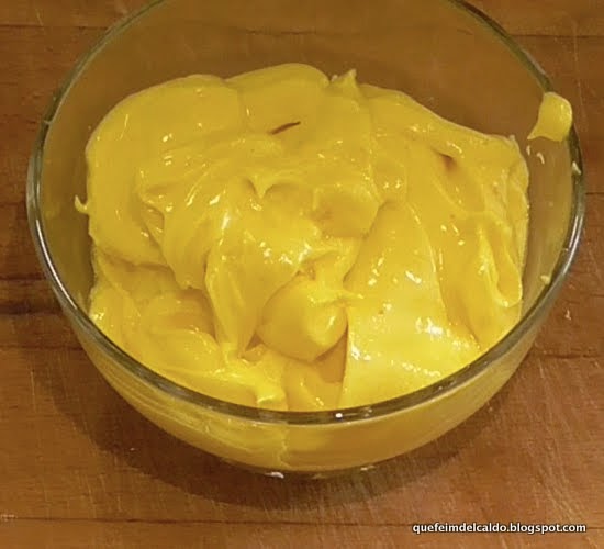 ya tenemos la mayonesa hecha, hemos conseguido un color amarillo muy llamativo y sabroso.