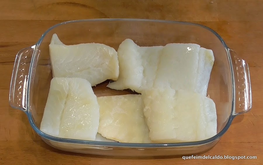 Colocamos los lomos de bacalao sobre una fuente apta para el horno.