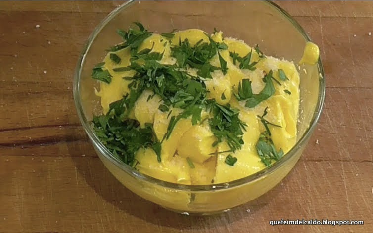 La mayonesa la he hecho muy de la tierra de donde vivo, he empleado azafrán de "LA BARRACA".
