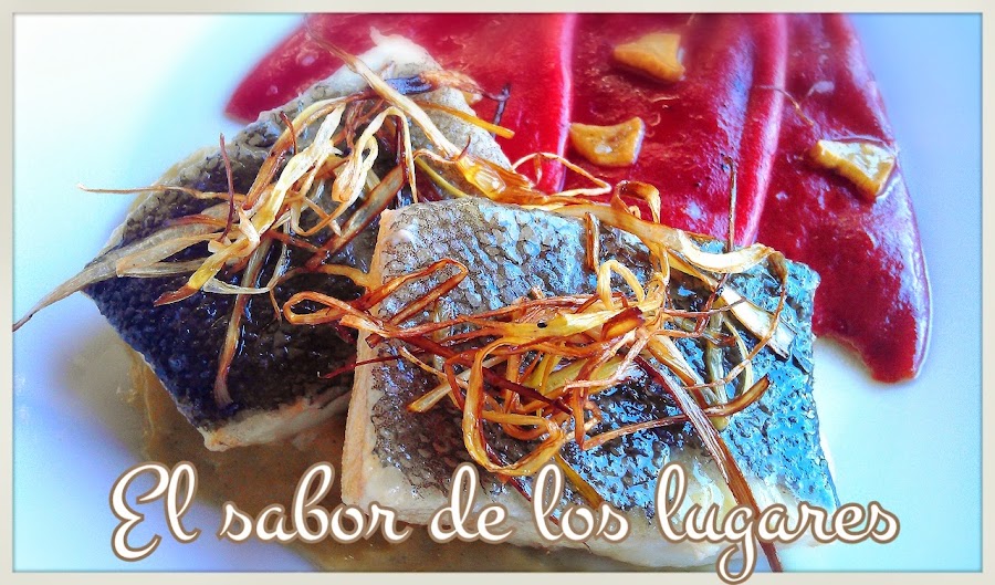 Ya sólo te queda montar el plato. Para ello coloca un poco de pil pil y sobre él 2 lomos de bacalao, acompaña con los pimientos del piquillo al ajillo y decora con el puerro frito. Listo para servir!!!