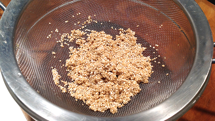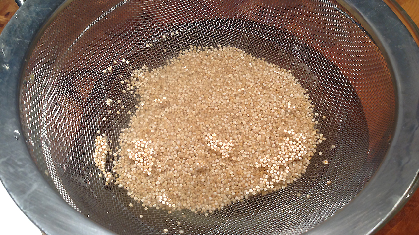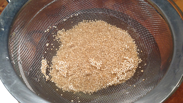 Tras 15 minutos en remojo, escurro la quinoa del agua donde ha estado hidratándose.