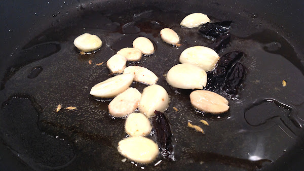 Lo primero que sofrío son las almendras, los ajos y las ciruelas. También pongo unos cuantos cominos.