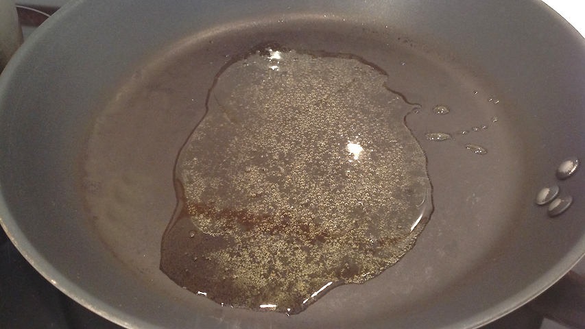 En una sartén con el fuego alto (8/10) y con un poco de aceite usado para confitar el bacalao, saltearé la verdura.