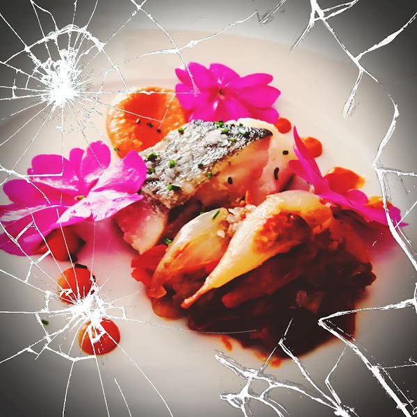 Colocar la salsa en un biberón, emplatar y adornar.