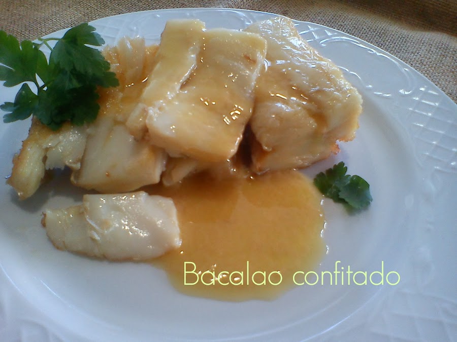 La verdad es que se ha hecho esperar,no veía en momento de ponerme en ello hasta que al final hemos podido disfrutar de un delicioso plato de bacalao confitado.Os digo que es todo un placer para el paladar y con pocos ingredientes y es que el bacalao es mucho bacalao!!!!!