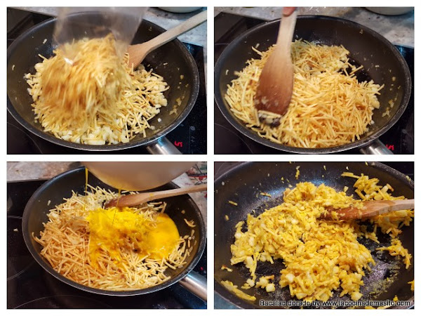 Batimos los 3 huevos y los incorporamos a la sartén para hacer un revuelto