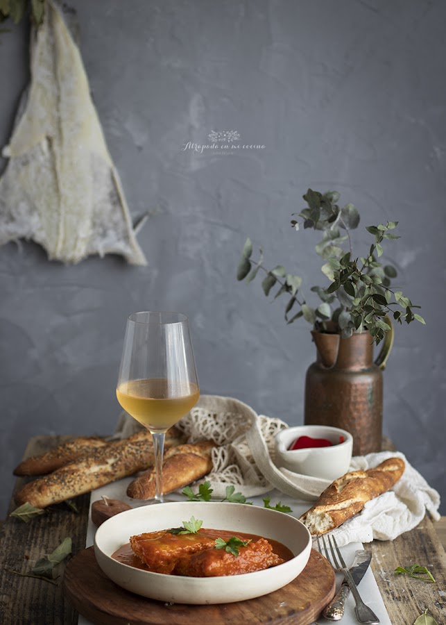 Es época de elaborar recetas con bacalao. El bacalao da muchísimo juego en la cocina, y podemos encontrarlo de distintas formas, en mi caso lo he comprado en salazón, y lo he desalado, pero si no lo encontráis o tenéis en el congelador bacalao congelado en su punto de sal podéis realizar esta receta igualmente.