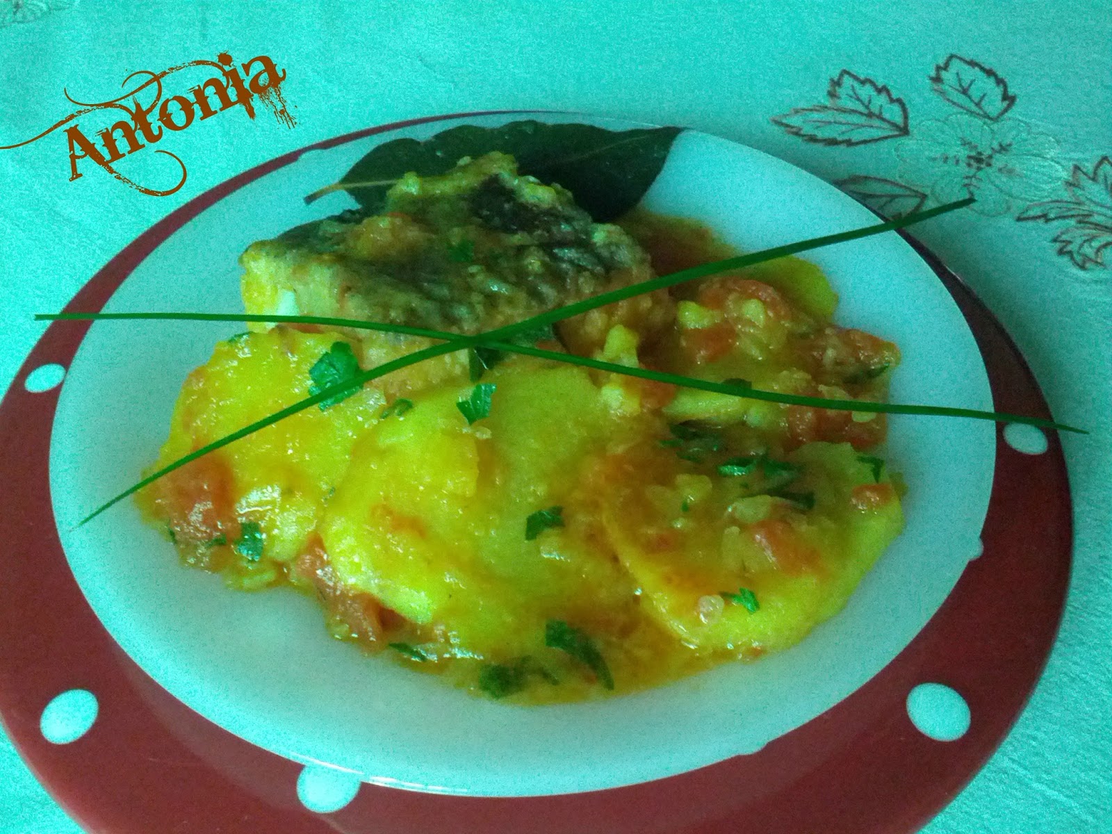 4 trozos de bacalao al punto de sal ,1 cebolla ,1 tomate maduro ,2 patatas ,3 dientes de ajos ,150 ml. de vino blanco ,unas hojas de laurel ,agua , sal , aceite ,perejil picado harina azafrán