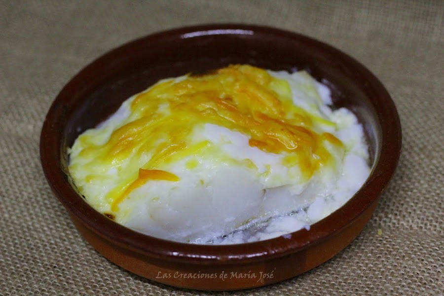 Untamos el bacalao con alioli por la parte de arriba y el queso rallado.