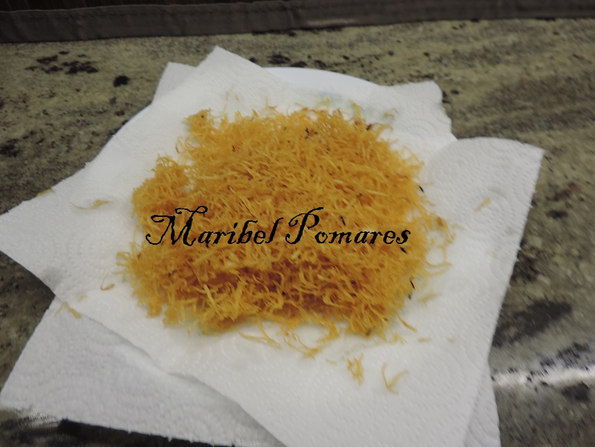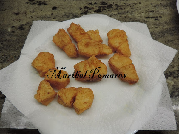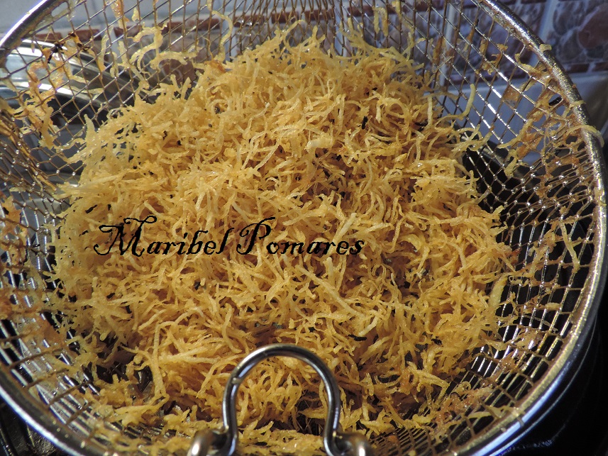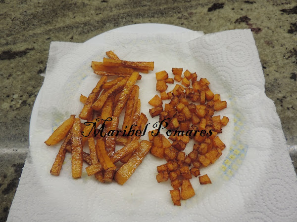 Sacamos las patatas y las ponemos en papel absorbente para quitar el exceso de aceite.