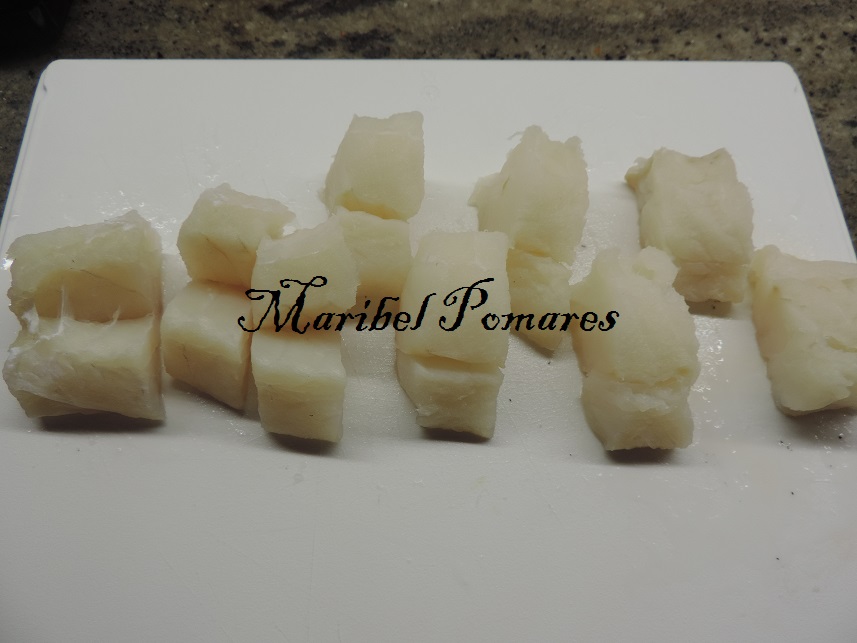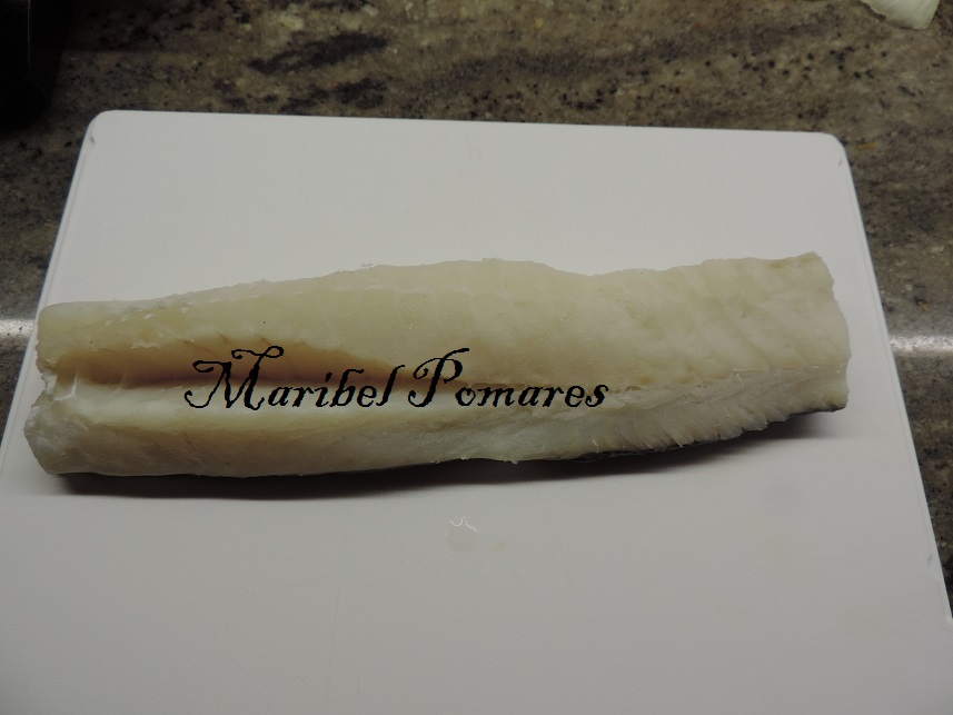 Ponemos el lomo de bacalao encima de la tabla de cortar.