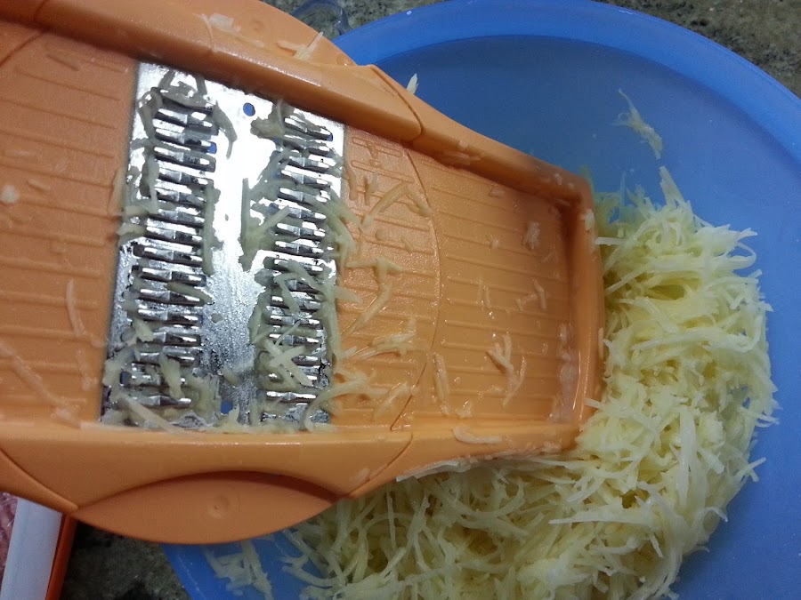 Mientras se va haciendo el bacalao rallar la patata en el rallador.