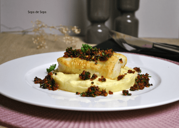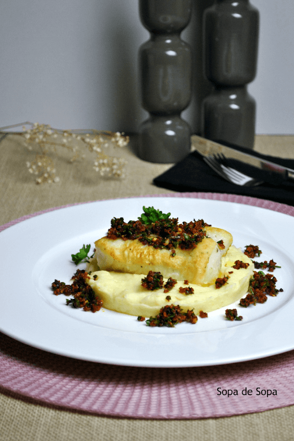 Bacalao salvaje con puré de mascarpone y Gremolata de sobrasada