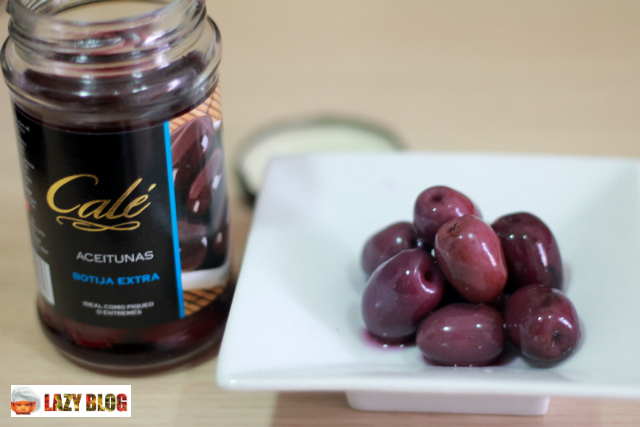 Para la salsa: 15 aceitunas botija, 50 g de nata (crema de leche), 20 ml de aceite de oliva, 1 pellizco de ají en polvo, sal, 1 cucharada de mayonesa