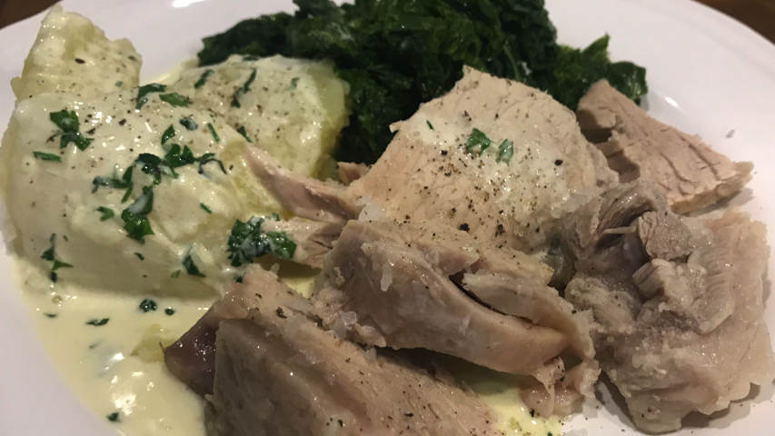 Introduce la carne escurrida de la salmuera en una olla con agua abundante y déjala cocer 1 hora con la olla tapada.