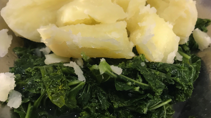 Saca la patata y haz lo mismo. Puedes hacerla puré o dejarla en trozos grandes como he hecho yo.