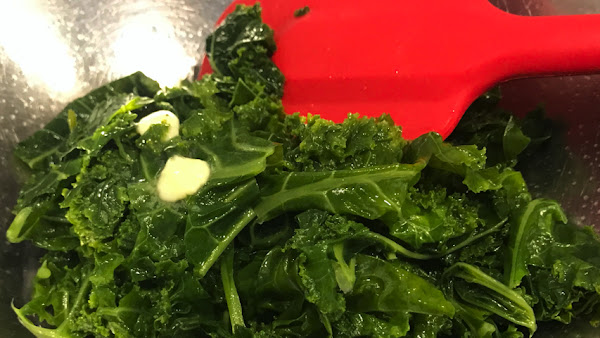 Retira la col a un bol. Añade un poco de mantequilla y mezcla.