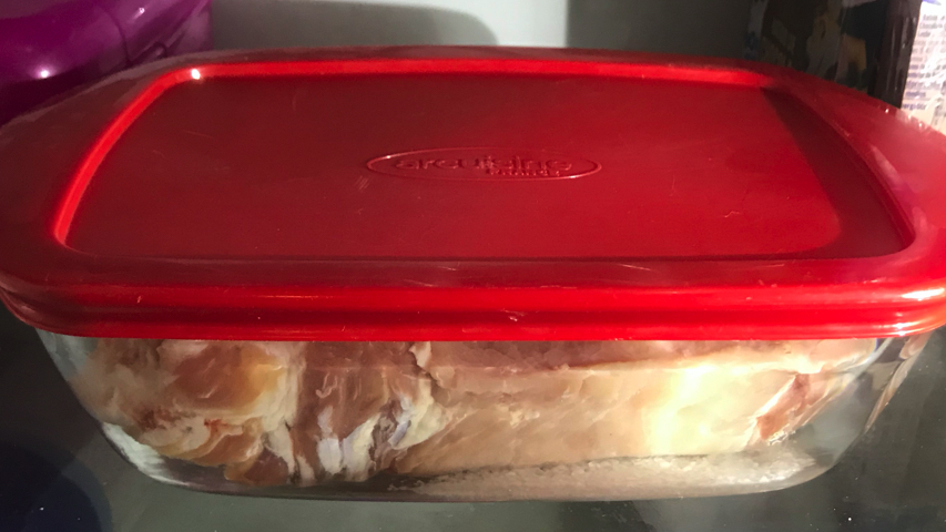 Introduce la carne en un recipiente con la salmuera y déjalo tapado en la nevera 48 horas.