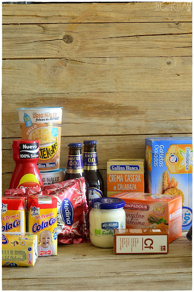 Como novedad, he utilizado estas almendras con aroma de Bacon que me entraron en la caja Disfrutabox de este mes, de "Aperitivos Medina", que vinieron junto el resto de productos que podéis apreciar en la fotografia, y que podéis conseguir a un precio de 9,99e con mi código DECORECETAS