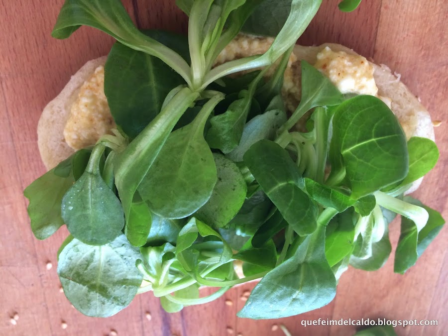 Una vez calientes ponemos unas gotas de aceite y sobre la base ponemos los canónigos limpios.