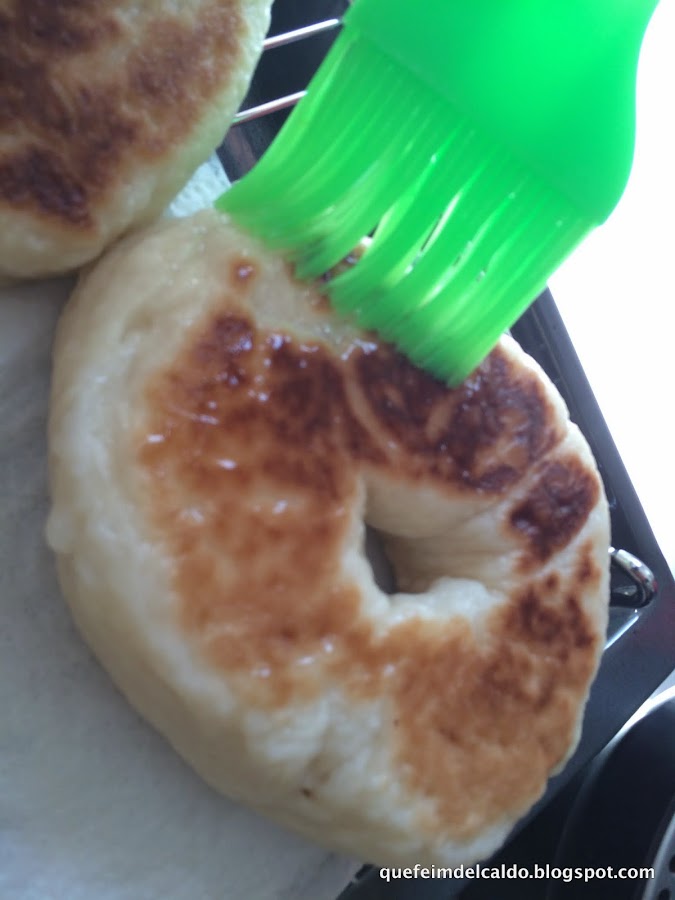 Transcurrido el tiempo de reposo, en una sartén de fondo grueso tostamos los bagels 2 minutos por cada lado, de este modo le crearemos la corteza al bagel
