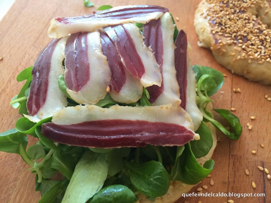 Hoy vamos a hacer unos bagels de jamón de pato que están de rechupete, la receta de los bagels ya la puse en el siguiente enlace BAGELS, pero la repetiré para que esté todo en la misma receta, eso sí será más corta que la original.