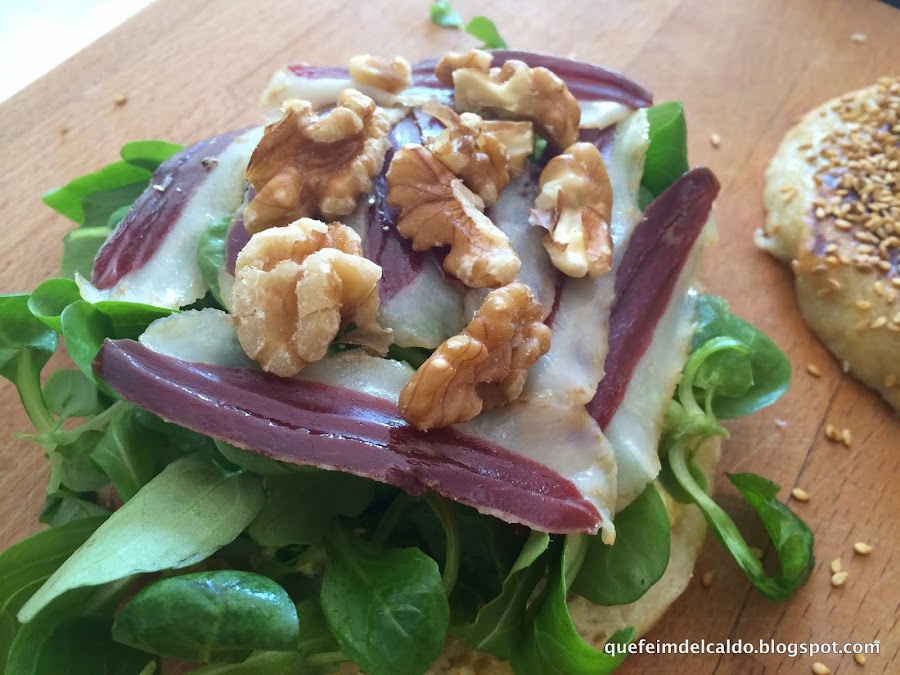 Sobre el jamón ponemos 6 o 7 nueces, eso va al gusto de cada uno.